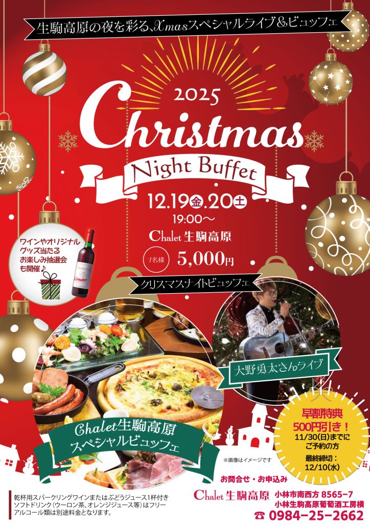 生駒高原の夜を彩る “Xmasスペシャルライブ&ビュッフェ” を開催します!