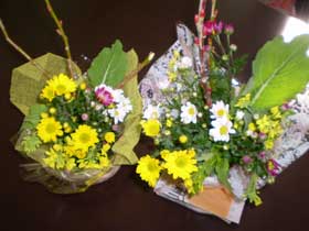 ネコヤナギや小菊、そして菜の花を使っての生け花です。