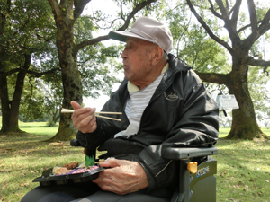到着がちょうどお昼だったので、いつもの「たまご村弁当」を木陰でいただきました。