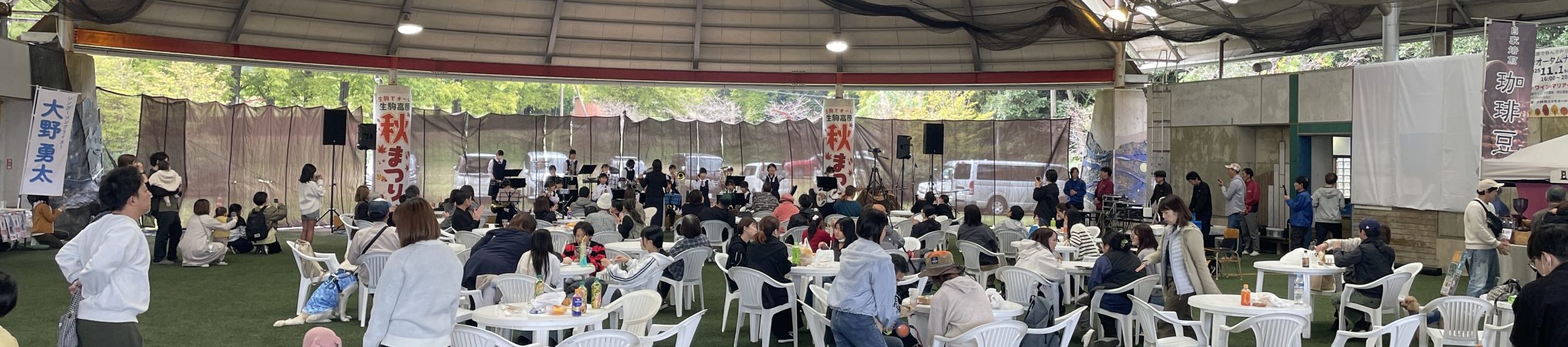 - 11月2日(月)は15時~20時まで「生駒高原オータムナイト」。ステージ演奏やにしもろのお酒・飲食、夜空を彩る花火などでお楽しみください。